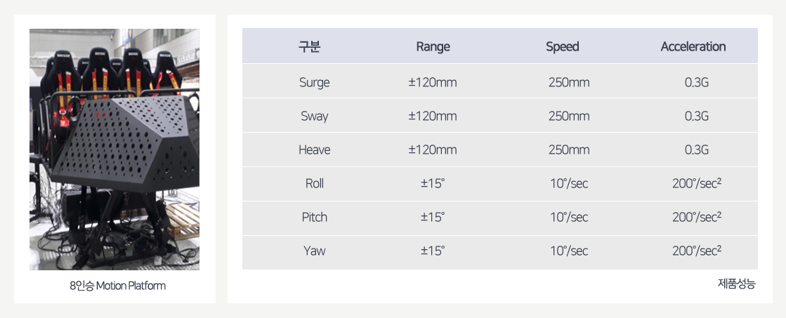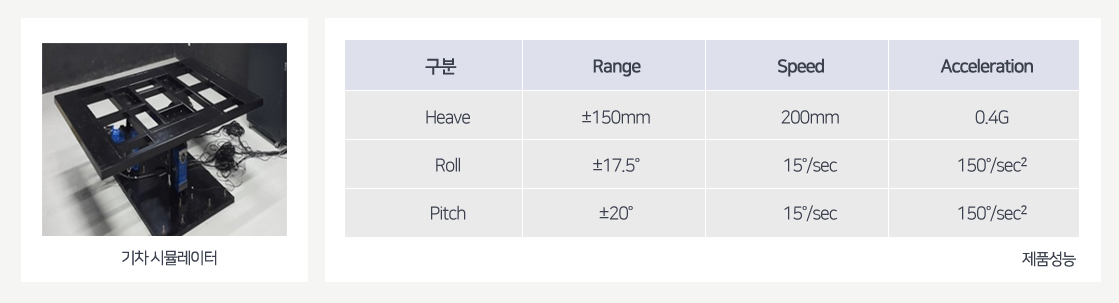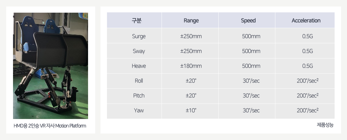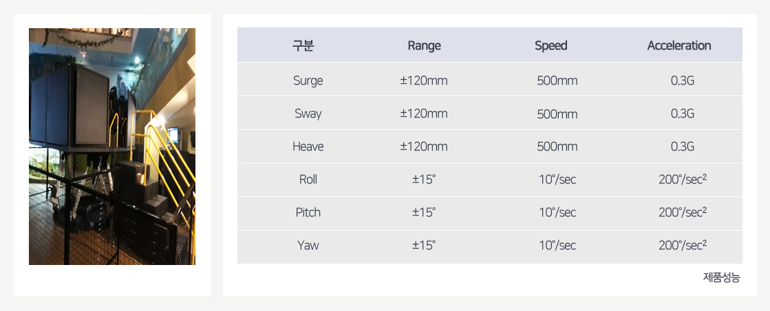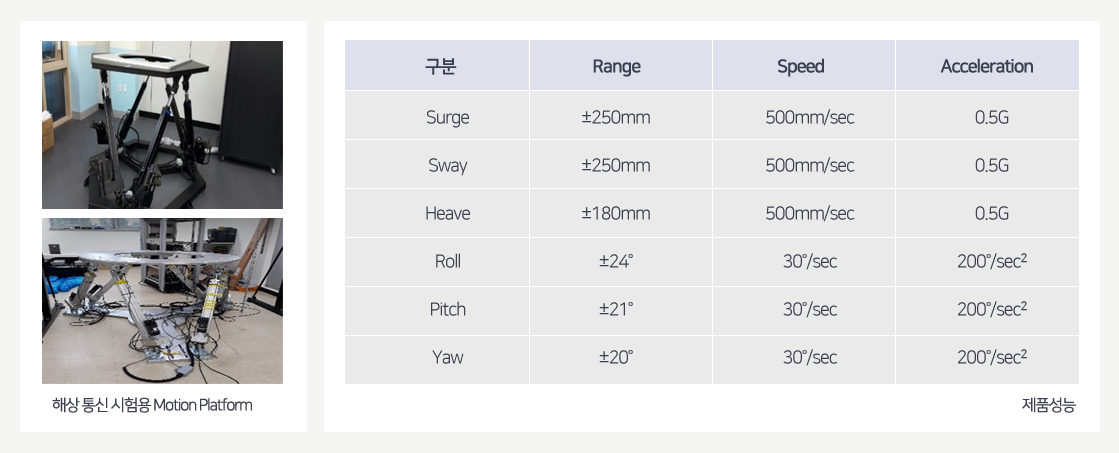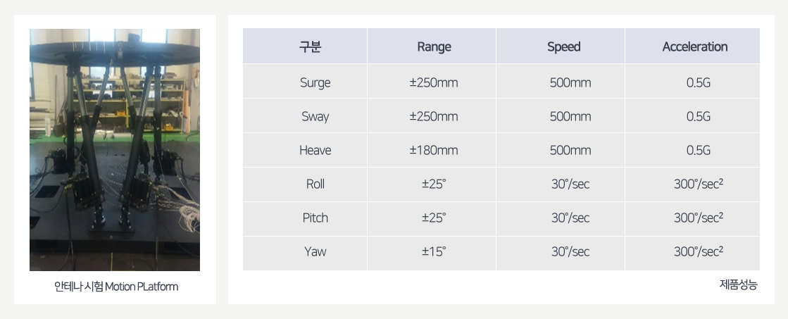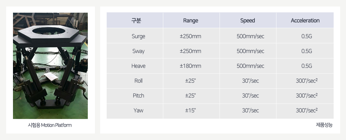 ▶ 고 중량 제작에 대하여 대단히 용이하며 개발 및 시험용 모션 플랫폼 사용에 적합함