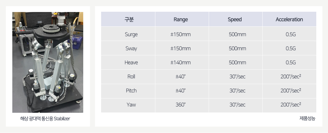 ▶ RF대역 해상 통신 모션 플랫폼 적용기반으로 해상용 Stabilizer 사업영역 확대